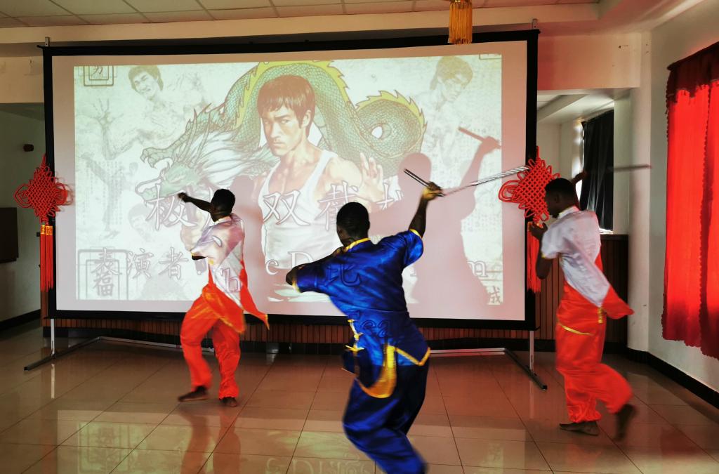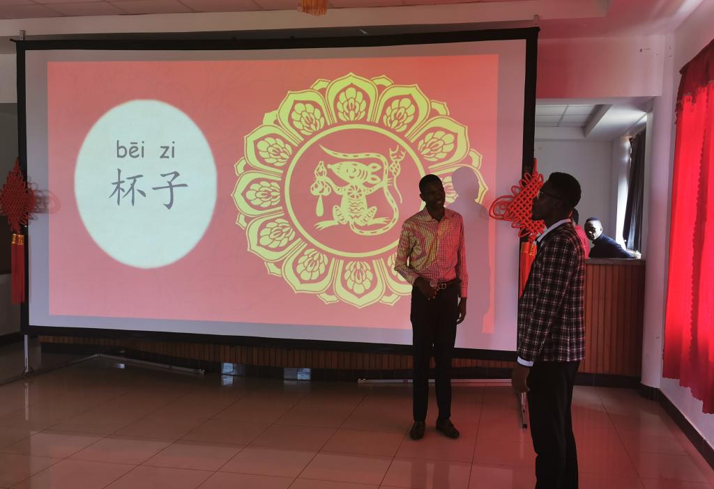 当地时间1月24日,郑州航院—多多马大学孔子学院举办“迎庚子孔院教学成果展暨师生共度春节联欢会”活动。郑州航院—多多马大学商法学院院长Amani博士,人文社科学院院长Tenge教授的代表Fatma女士,中铁七局常彦军先生、张健先生,孔子学院中方院长杨伦博士,孔院师生及孔院武术队等300余人参与此次活动。