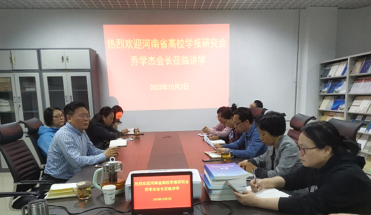 11月3日,河南省高校学报研究会会长、《郑州大学学报》(哲学社会科学版)副主编乔学杰应邀到学报编辑部作题为“作为学术生产与传播‘链’的学术期刊”的报告。