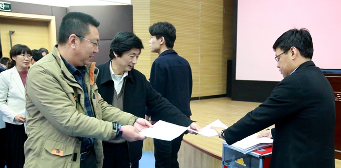 3月29日,我校在图书馆第二报告厅召开校级领导班子和领导干部2016年度综合考核述职测评大会,以省高工委专职委员陈垠亭为组长的省委第二考核组一行7人出席会议。学校领导班子成员、党委委员、纪委委员、中层正职、省政协委员、省辖市以上民主党派负责人、教师代表、学生代表等参加了会议。会议由党委书记梁晓夏主持。