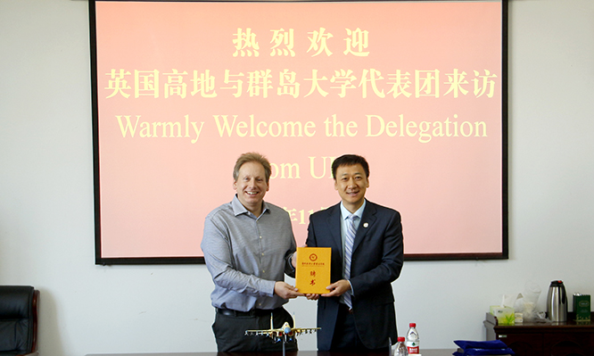 11月9日,英国高地与群岛大学(简称UHI)副校长Stuart Gibb,UHI大学Perth校区校长Margart Cook、副校长Veronica Lynch和该校国际合作项目部部长申琳一行四人对我校进行友好访问。副院长赵健与代表团亲切会谈,并为Stuart Gibb颁发学校兼职教授聘书。