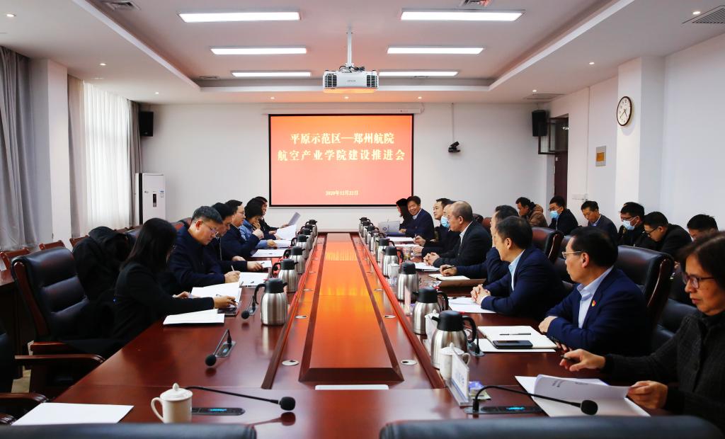 12月22日, 平原示范区党工委书记王朝杰带领四大班子成员一行7人来校,考察指导我校航空产业学院建设推进情况。党委书记付强,院长李勇,副院长张锐、申金山、赵健、李广慧、王继东出席会议。