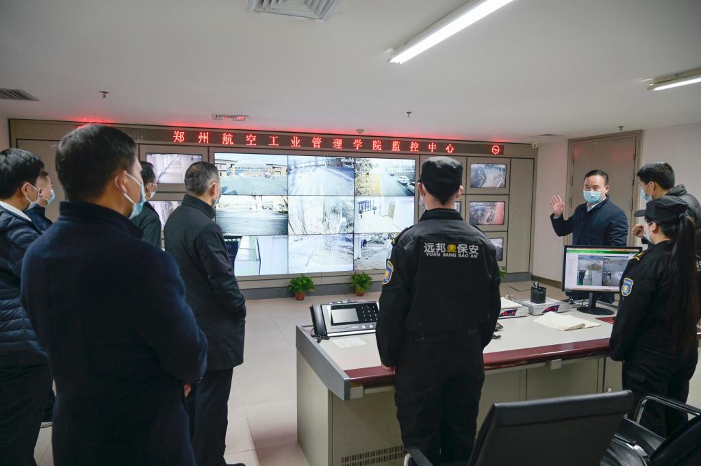 校领导一行来到校园监控室和消防控制室。室内各种监控和中控系统运行正常,覆盖全校的493个监控设备实施24小时无间隔作业,通过机控与人控、日常巡检与视频监控的有机结合,对学校火灾报警信息与设备运行状态信息实行远程集中监控。付强代表校领导和全校3万名师生向坚守岗位的教职员工拜年。他说,今天就是除夕了,节日安全格外重要,越是到了假期,越要提高警惕。他希望,在岗值班人员要站好岗、值好勤,确保学校节日期间的安全稳定。