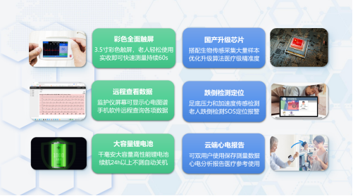 国内领先的家院两用适老多功能云端腕式心电监护仪