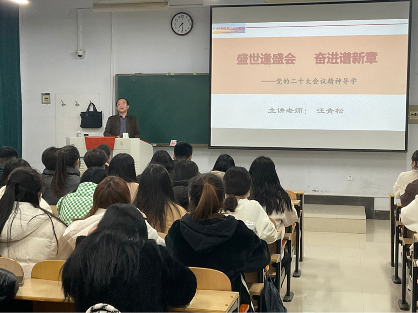 2月22日至3月11日,以党委宣传部部长尹朝晖为组长,马克思主义学院教师副教授侯丽羽、历史学博士孙魏为成员的第一宣讲组,分别为商学院、管理工程学院、信息管理学院等4个学院全体党员、学生干部作专题培训。