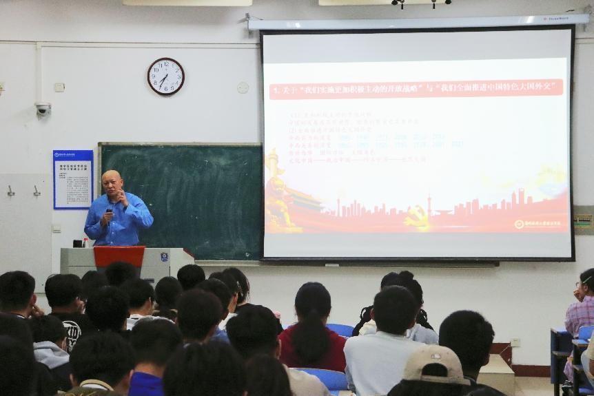 刘敏以《中国特色大国外交》为题,围绕党的二十大报告里中国外交、新时代中国外交理论与实践和新中国外交品格与精神等三个方面展开解读。他指出,推进中国特色大国外交,是践行党的初心使命、应对世界百年变局、实现中华民族伟大复兴的必然要求。我们要继续坚持新时代中国特色大国外交政策,坚决维护世界和平正义,坚定不移推动构建人类命运共同体。