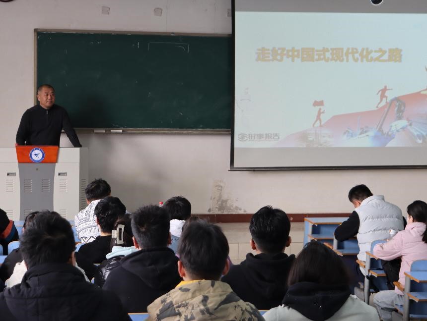 尹朝晖以《中国式现代化的历史逻辑、中国特色、本质要求和战略安排》为题,从中国式现代化的历史探索、中国式现代化的中国特色和本质要求、全面建成社会主义现代化强国的战略安排以及为中华民族的伟大复兴凝聚起蓬勃的青春力量四个方面展开宣讲。他强调同学们要坚定理想信念,不畏艰难困苦,不负青春韶华,勇于担当,做肩负起民族复兴大任的时代新人。