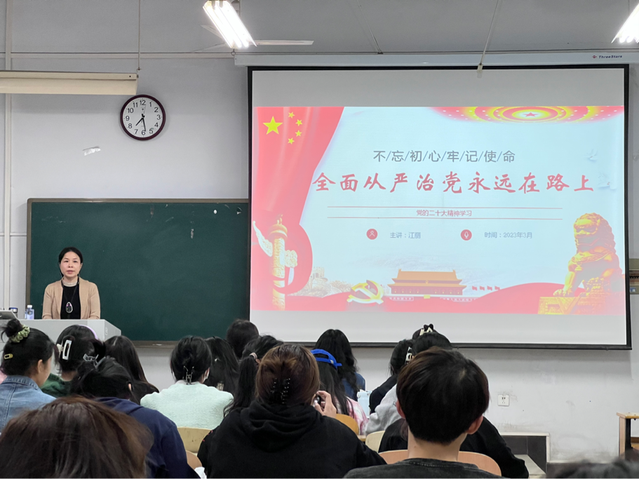 江丽以《全面从严治党永远在路上》为主题,从“全面从严治党” “坚持和加强党中央集中统一领导”“完善自我革命”等方面进行宣讲,引领青年党员深刻认识到坚持党要管党、从严治党,是党的建设的一贯要求和根本方针。