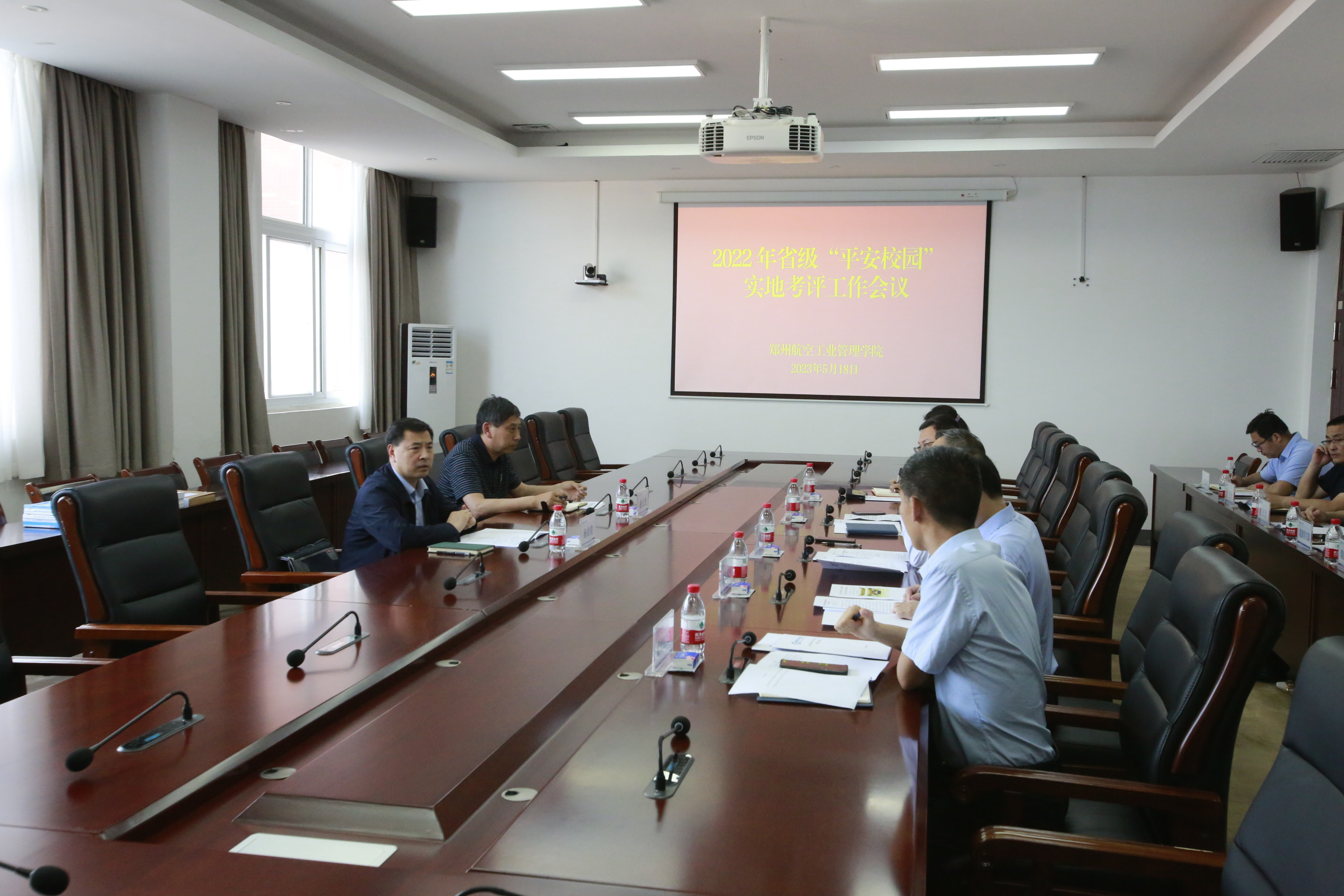 5月18日,以河南省教育厅安全处一级调研员杨伯堂为组长的省级“平安校园”考评组来校考评指导。校党委副书记余传杰出席汇报会。