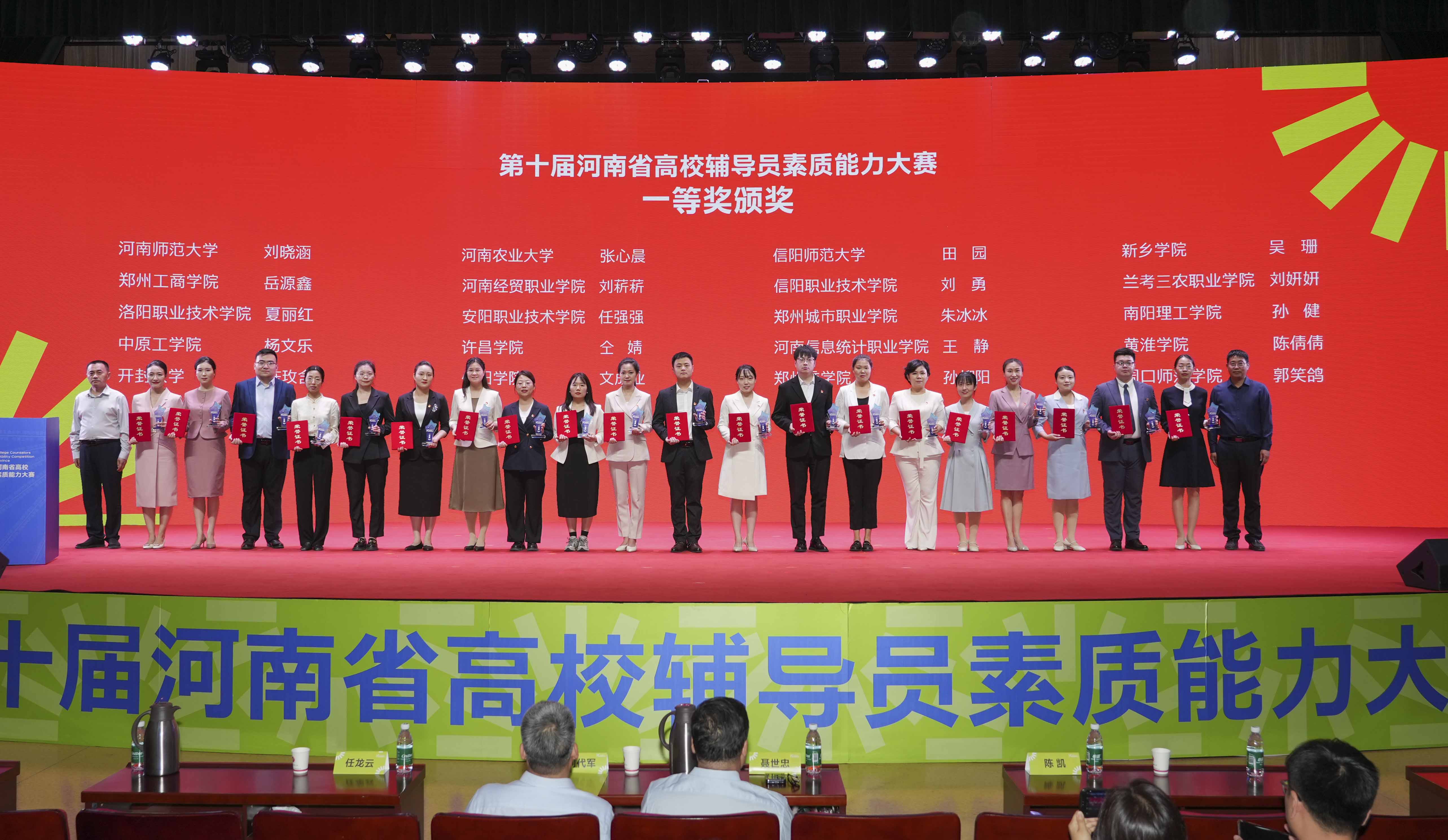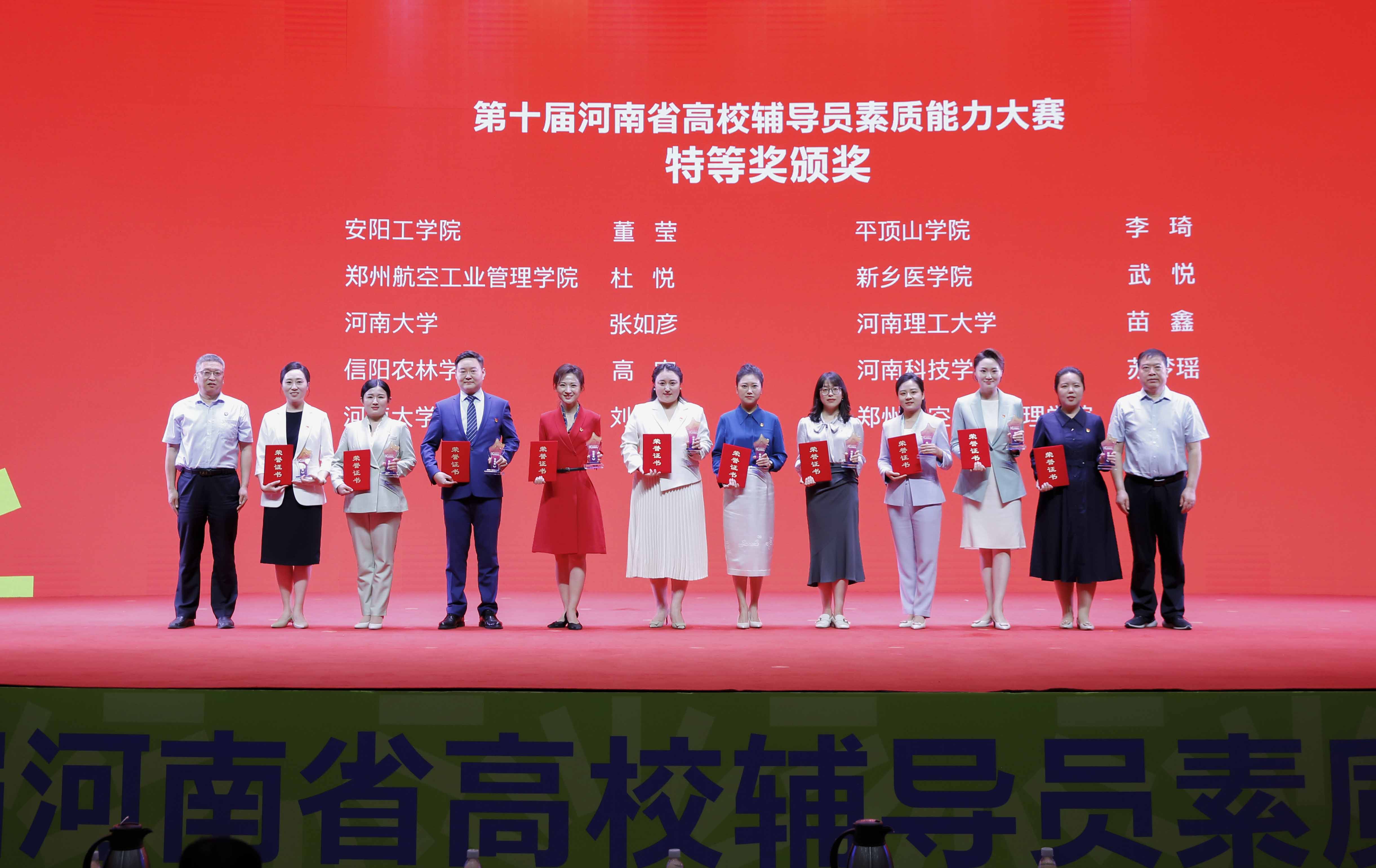 4月22—24日,第十届河南省高校辅导员素质能力大赛在我校成功举办。省教育厅二级巡视员聂世忠,党委书记、校长刘代军,以及省教育厅思政处主要负责人出席颁奖仪式。