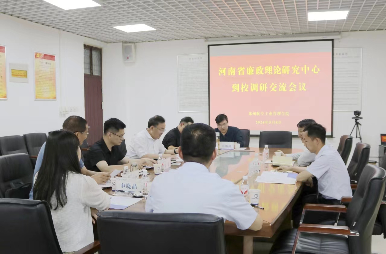 5月8日,河南省廉政理论研究中心秘书长、河南省社科院纪检监察研究所所长万银锋一行来校调研交流廉政理论研究工作。校纪委书记、监察专员王继锋主持座谈会。