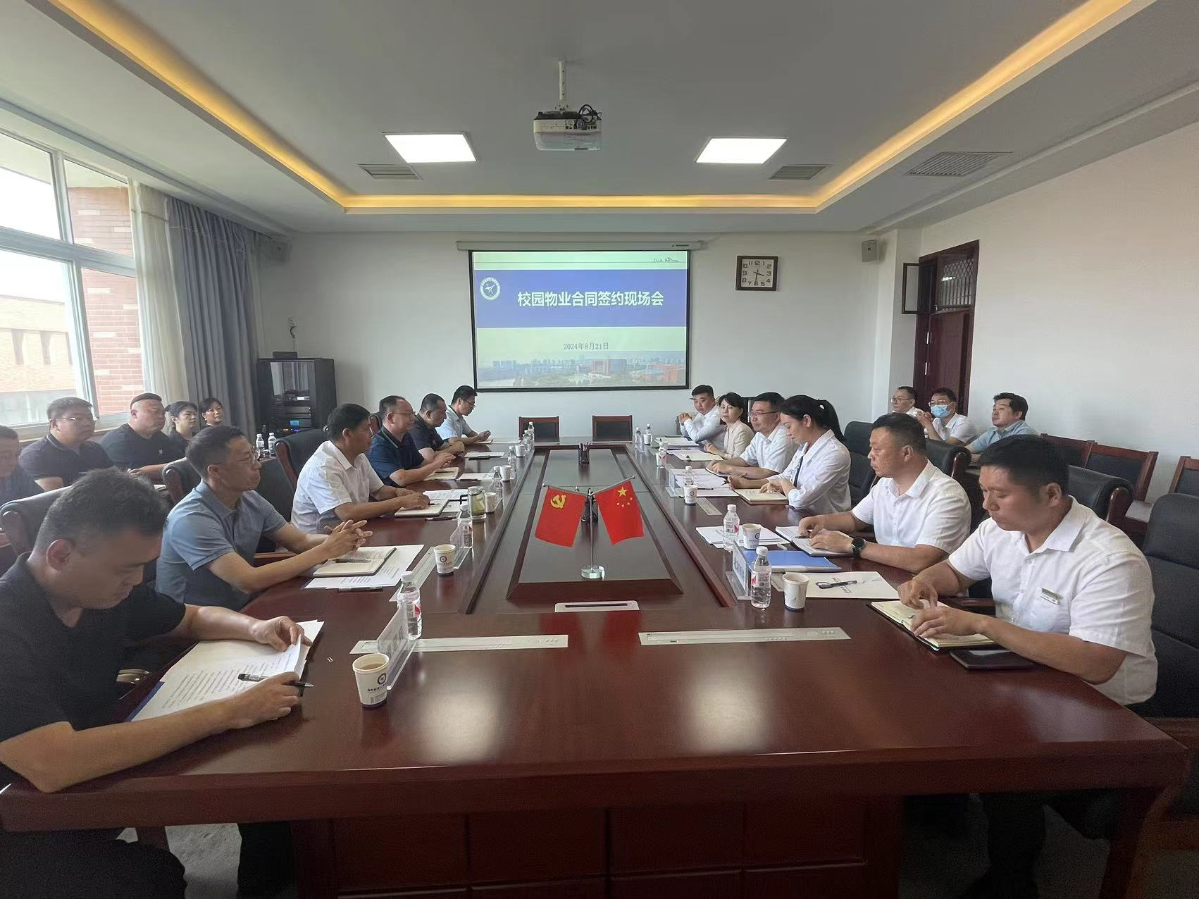 后勤管理处、图书馆、体育部负责人及相关人员,新中标物业公司负责人及项目经理等参加签约仪式。