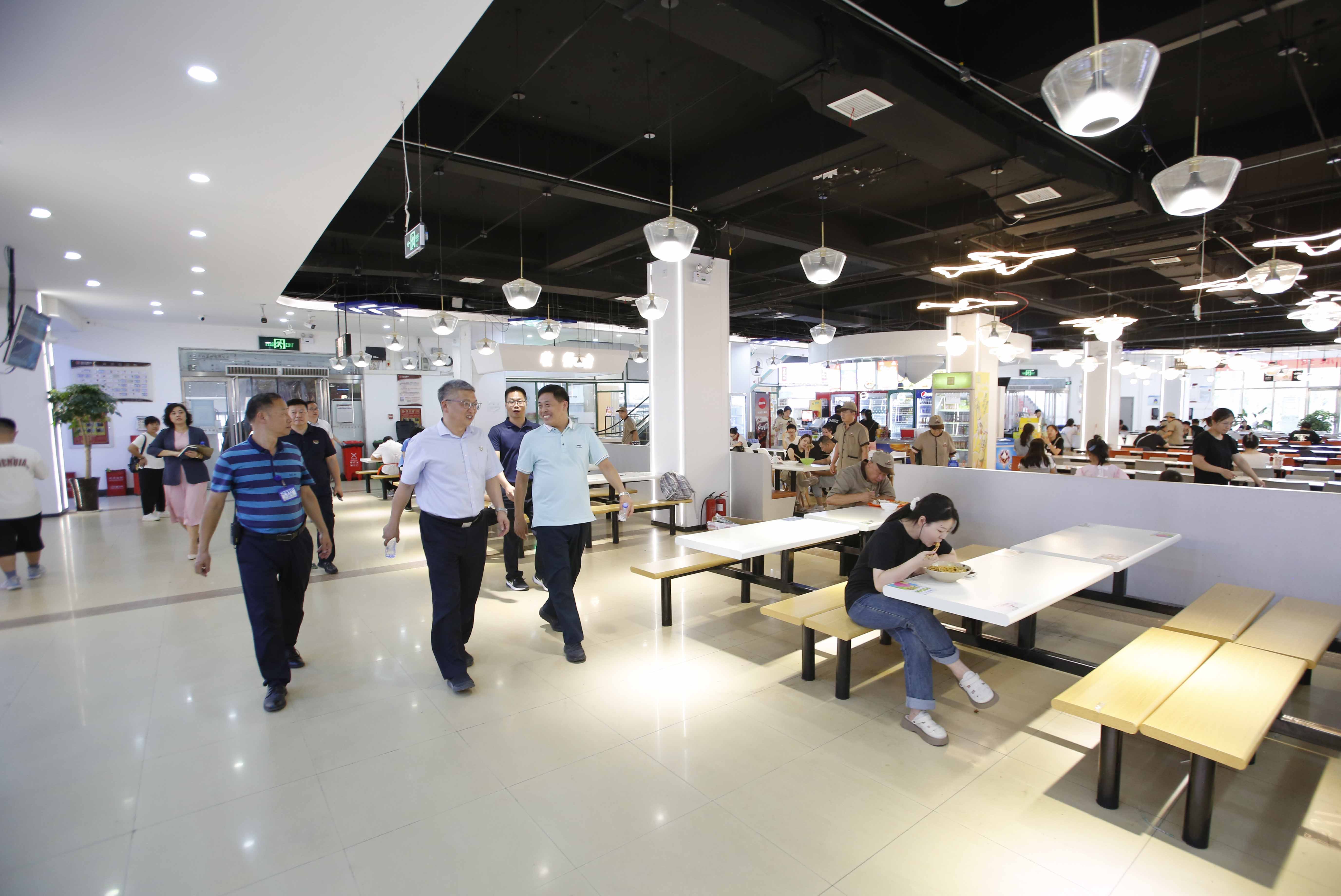 在东苑餐厅,相关负责人汇报了迎新期间各餐厅供餐、迎新餐券配发等工作情况。刘代军强调要做好食堂管理,聚焦师生餐饮需求,把好食品安全“总开关”,不断提升师生获得感、幸福感。随后,校领导还来到新生军训服装领取点查看现场秩序和发放情况。