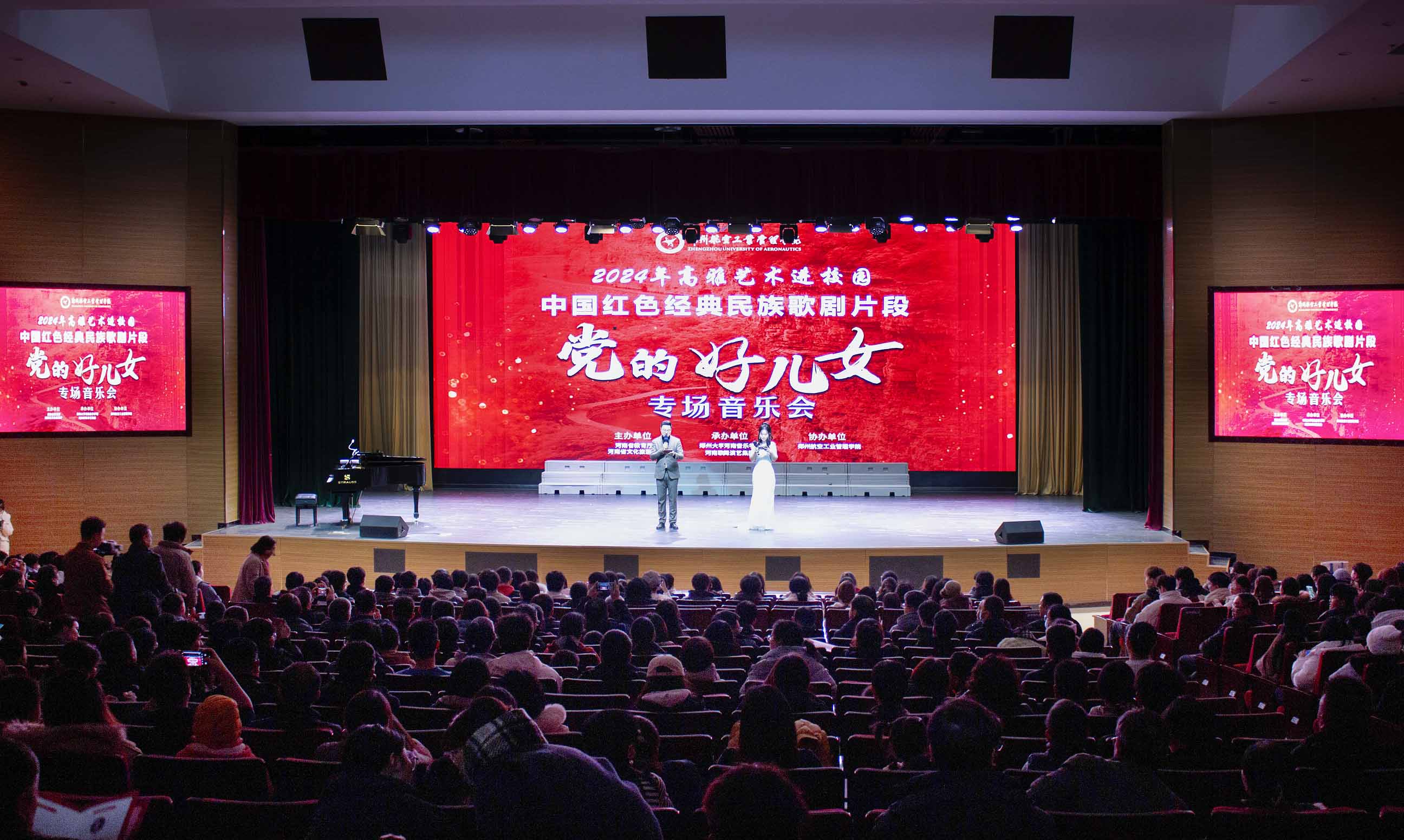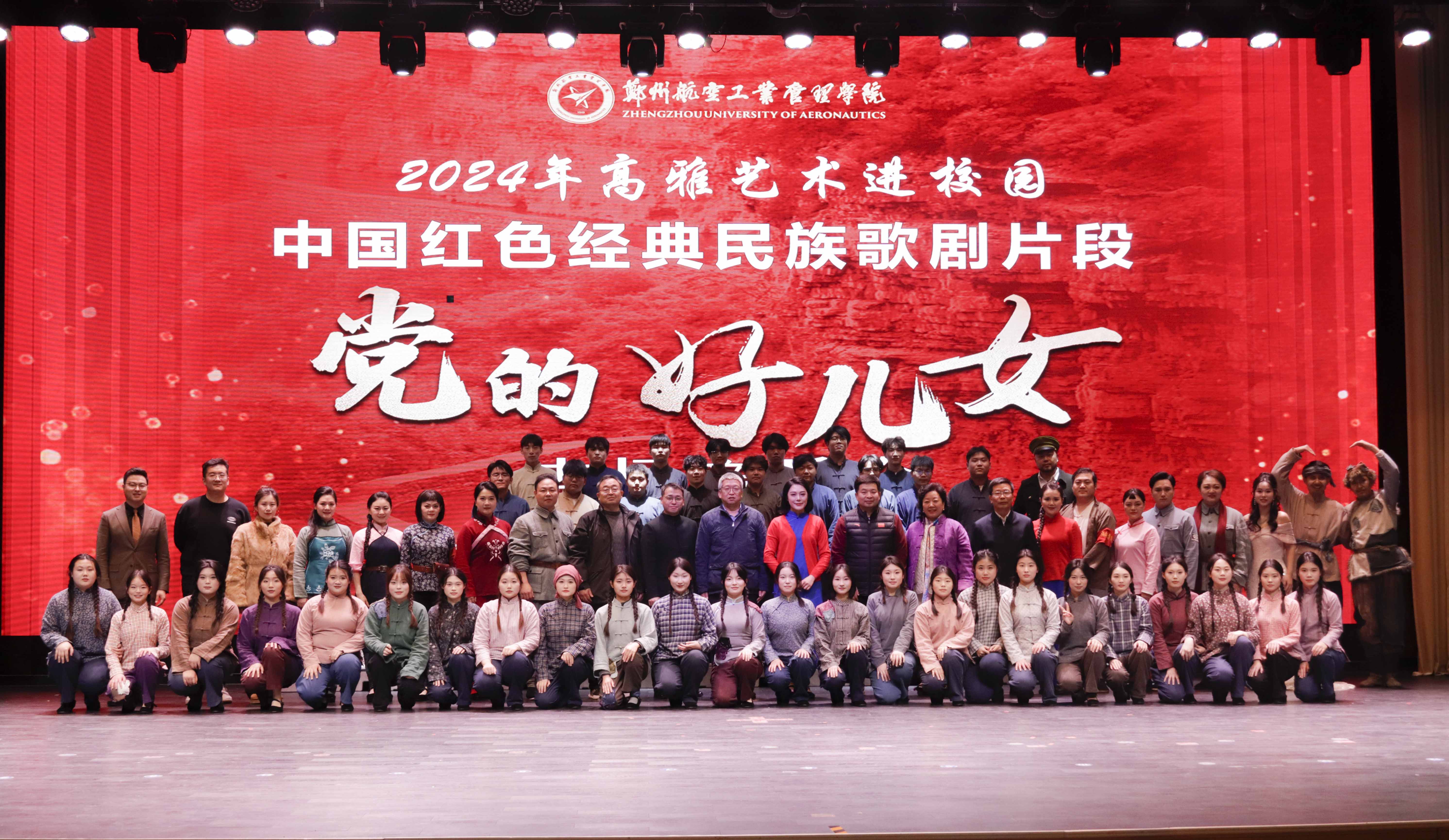 12月22日,2024年河南省高雅艺术进校园·中国红色经典民族歌剧片段《党的好儿女》专场音乐会在我校盛大开演。党委书记刘代军,党委副书记、工会主席李捷,纪委书记、监察专员王继锋和副校长李泽锋出席活动。