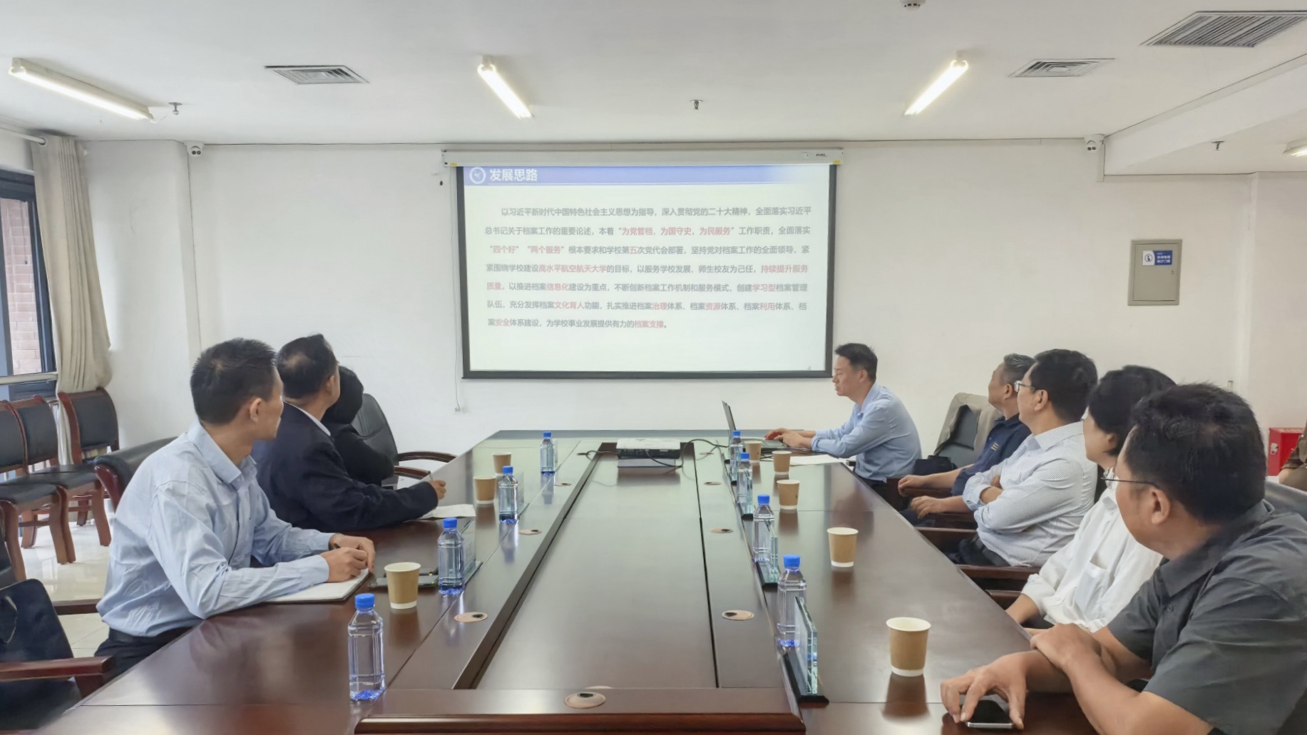 翟霣远听取了我校关于档案学学科专业建设及档案馆工作情况的介绍,对我校在档案学专业建设、档案馆规范化管理及数智化转型方面取得的成果表示赞赏。他表示,期待双方进一步深化合作,加强优势互补,共同推动档案事业实现新发展。