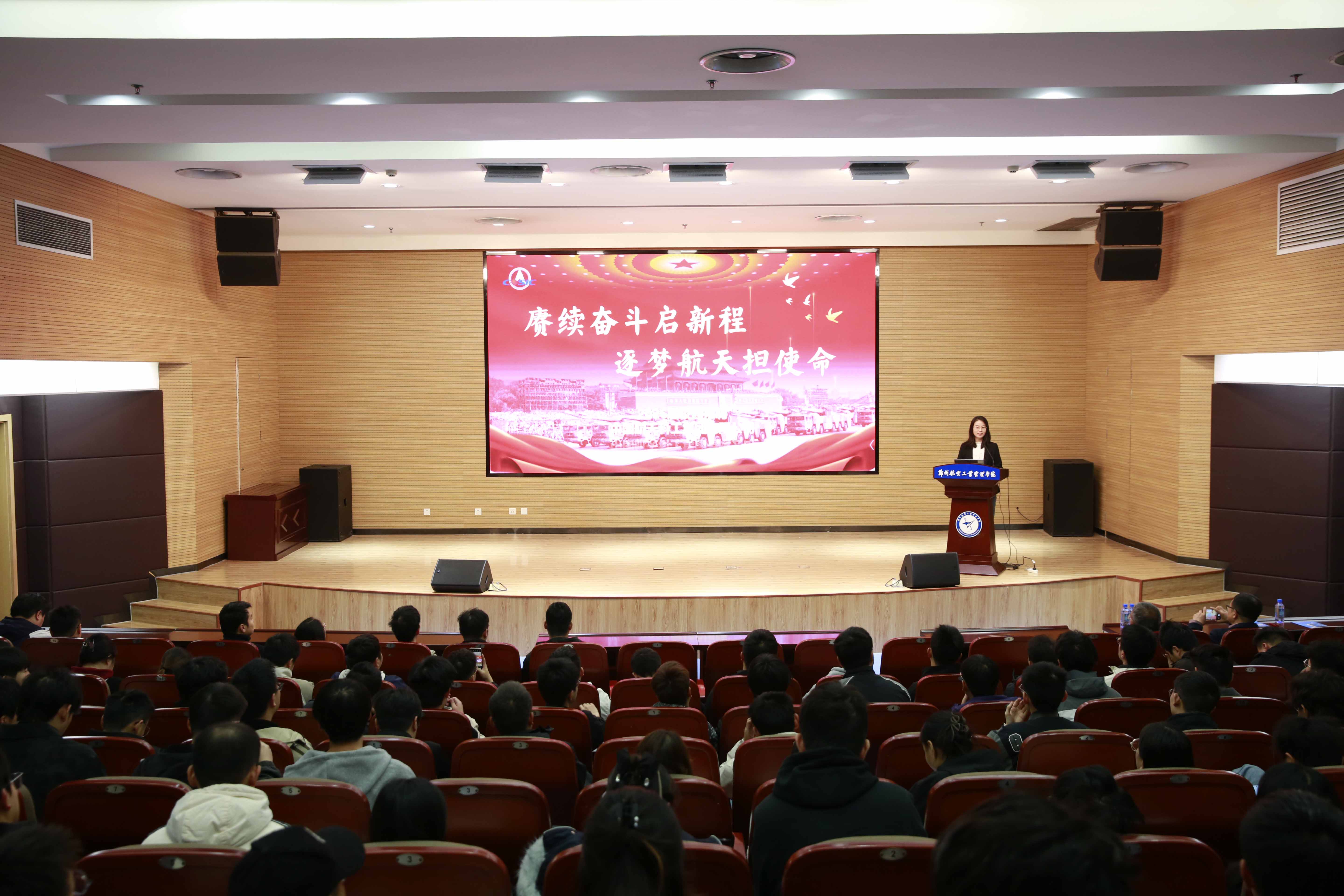 何乐介绍了公司概况和未来发展的人才需求,并表示,郑航的人才培养与企业的实际需求高度契合,期待更多郑航学子加入中国航天科工大家庭,共同为国家强军事业贡献力量。