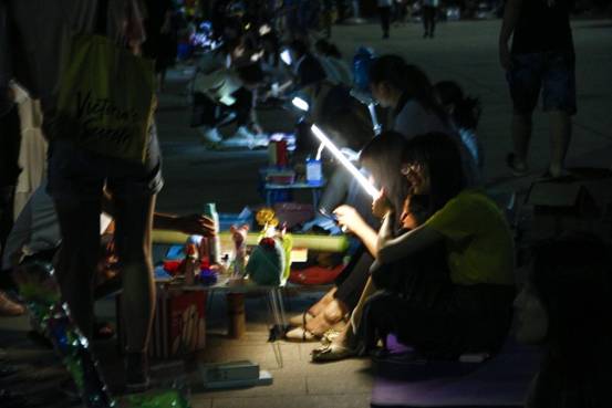 夏天,是毕业的季节,跳蚤市场也应时而生,中心广场上的景象用热闹二字形容再好不过了。