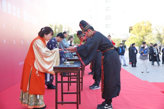 11月24日,我校第十五届传统文化月暨第十四届民族文化艺术节拜师礼、民族文化游园会活动在中心广场举行。党委书记、校长刘代军,党委副书记、工会主席杨培,党委副书记余传杰,副校长李广锋出席活动现场。