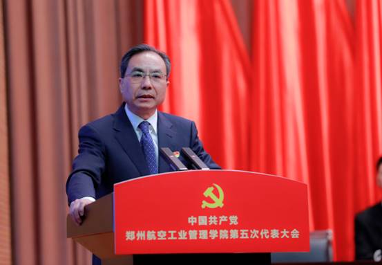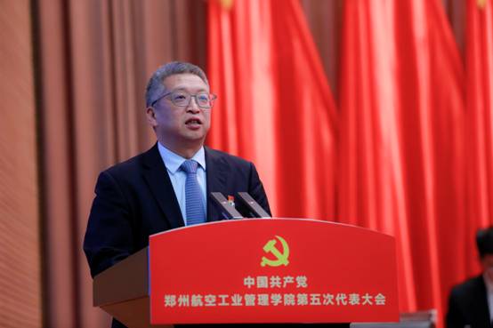 中国共产党郑州航空工业管理学院第五次代表大会召开 时间:2025年01月26日 作者:新闻中心 编辑:新闻中心 点击: 1月23日至24日,中国共产党郑州航空工业管理学院第五次代表大会召开。 大会主题是:高举习近平新时代中国特色社会主义思想伟大旗帜,深入学习贯彻习近平总书记关于教育、科技、人才的重要论述和对航空航天强国建设的重要指示批示精神,全面贯彻新时代党的教育方针,锚定“高水平航空航天大学”建设目标,弘扬“空天报国砺新图强”的郑航精神,聚力转型发展、特色发展、创新发展,挺膺担当、勇毅前行,奋力谱写高水平航空航天大学建设新篇章。 2025年01月26日 图片新闻 上一条:党委书记刘代军、校长邓中亮一行到航空港校区调研慰问 下一条:我校工会荣获“全国模范职工之家”荣誉称号 【关闭】