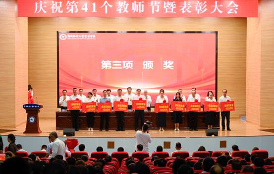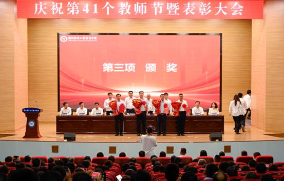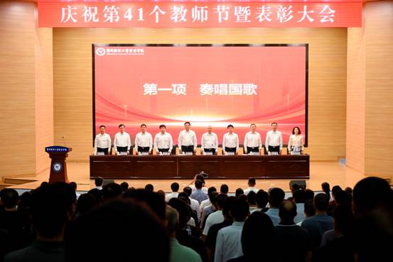 我校举行庆祝第41个教师节暨表彰大会 时间:2025年09月12日 作者:新闻中心 编辑:新闻中心 点击: 9月10日,我校举行庆祝第41个教师节暨表彰大会,传达学习习近平总书记给全国特岗教师代表重要回信精神,传达学习河南省庆祝第41个教师节表彰大会精神,总结成绩、表彰先进,大力营造尊师重教的浓厚氛围,激励广大教职员工牢记为党育人、为国育才初心使命,弘扬教育家精神,积极投身学校高质量发展新征程。全体校领导出席会议。校党委书记王全良作总结讲话。会议由校长邓中亮主持。 2025年09月12日 图片新闻 上一条:我校邀请航空航天专家吴杰为新生讲授“开学第一课” 下一条:我校召开航空港校区建设项目廉政警示教育工作会 【关闭】