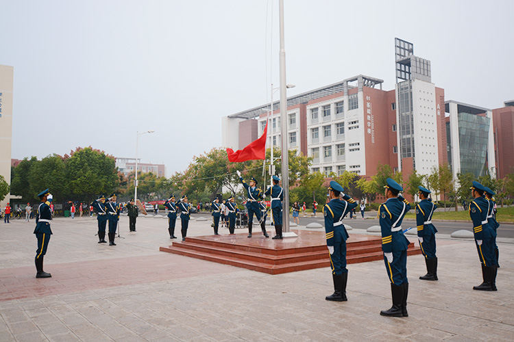 副院长贺金社、工会主席高海水参加仪式。仪式由党委武装部部长、军训团团长贾钧主持。