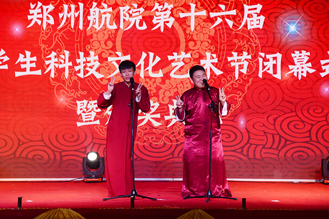整场晚会分为青春飞扬、激情畅想、圆梦郑航三个篇章,节目多半选自本届艺术节的优秀获奖作品。晚会在青春活力的啦啦操中拉开序幕。优雅的小提琴,浪漫的萨克斯,两者的完美结合给人如痴如醉的享受;清幽的曲调,悠扬的琴弦,浓淡相宜的笔墨流露出艺术的灵动之美;以我校大学生学习生活为内容创作的微电影《勿忘初心》展现了莘莘学子的追梦之路;青春的交响绽放华丽的激情,校园的纯真挥洒最美的真挚。节目精彩纷呈,台下掌声阵阵。晚会在大合唱《半个月亮爬上来》、《永远的朋友》中落下帷幕。