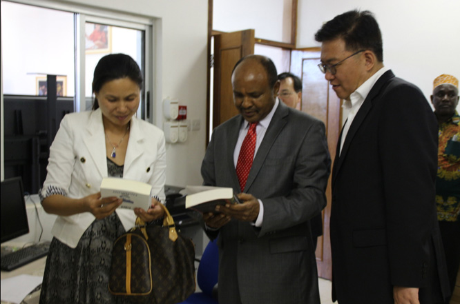 郭业洲还和孔院教师及学生亲切交谈,详细询问了孔院教师在坦桑尼亚的工作生活情况,对孔院学生的书法和中国画作品赞不绝口,高度肯定了孔子学院在传播中华文化方面所起的桥梁作用。
