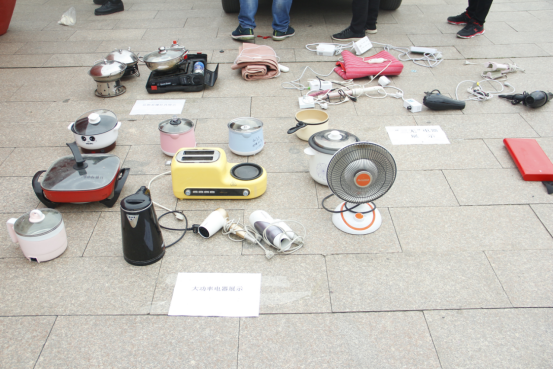 演练期间,消防科工作人员还在中心广场展示违规电器,警示学生加强消防安全意识。