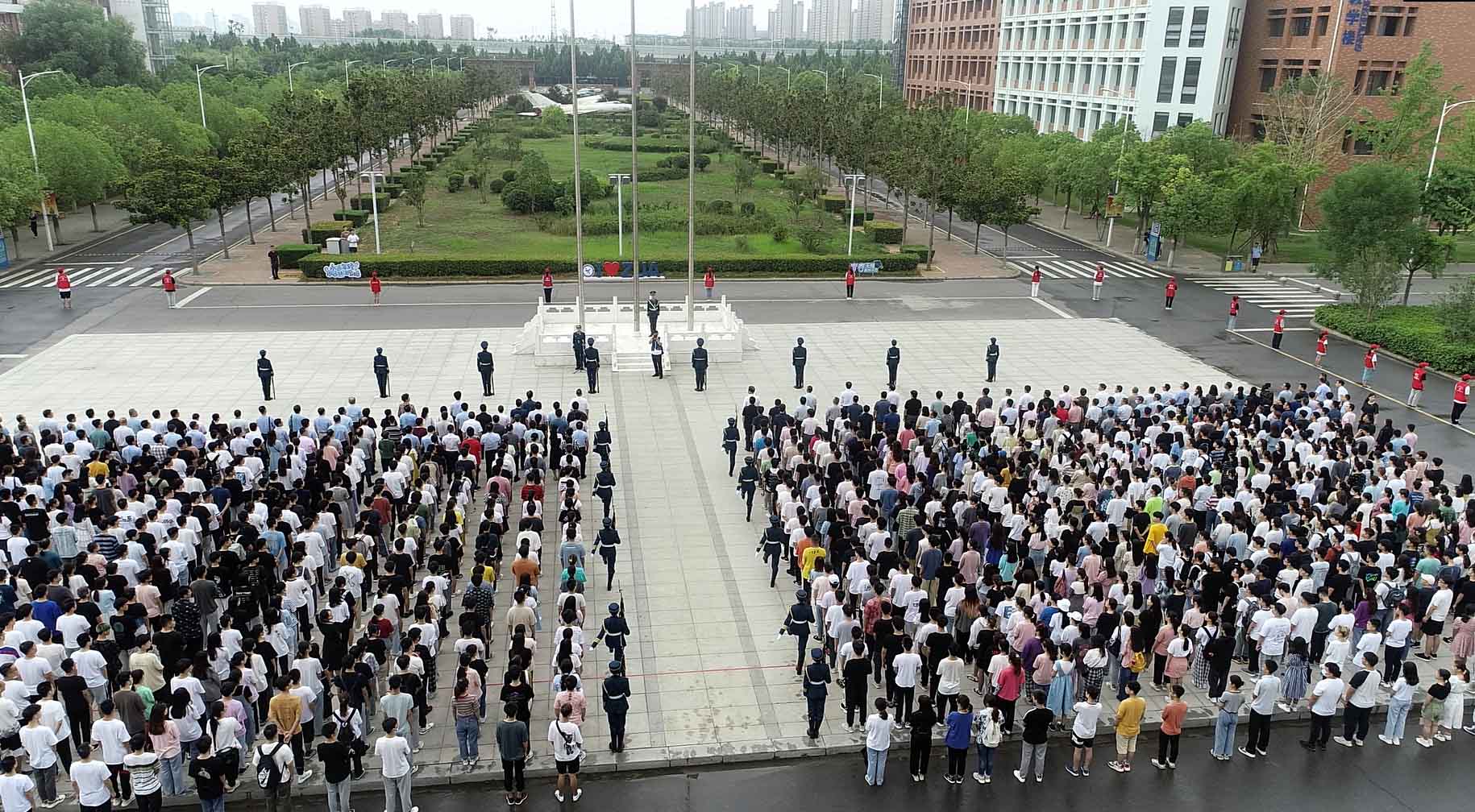 我校举行庆祝中国共产党百岁生日“七一”盛大升国旗仪式 时间:2021年07月01日 作者:新闻中心 图文 编辑:新闻中心 点击: 7月1日,郑州航院“七一”升国旗仪式在龙子湖校区国旗广场隆重举行,庆祝伟大的中国共产党百岁生日,表达郑航人知党恩、感党恩,坚定不移听党话,矢志不渝跟党走,时刻与党同心同行的信心和决心。 校领导付强、杨培、余传杰、申金山、张文强、赵健、李广慧、王继东、李捷,全体处级干部,以及来自全校各教学单位的师生代表近千人参加“七一”盛大升国旗仪式。 7时30分,庆“七一”升国旗仪式正式开始。威武雄壮的国歌声响彻校园,五星红旗冉冉升起。参加升旗仪式的师生面向国旗肃立致敬,共同祝福伟大的中国共产党生日快乐,祝福伟大的祖国繁荣昌盛,祝福中国人民幸福安康。 2021年07月01日 校内新闻 上一条:我校师生集中收看庆祝中国共产党成立100周年大会直播 热议习近平总书记重要讲话 下一条:我校隆重召开 “两优一先”表彰大会 【关闭】