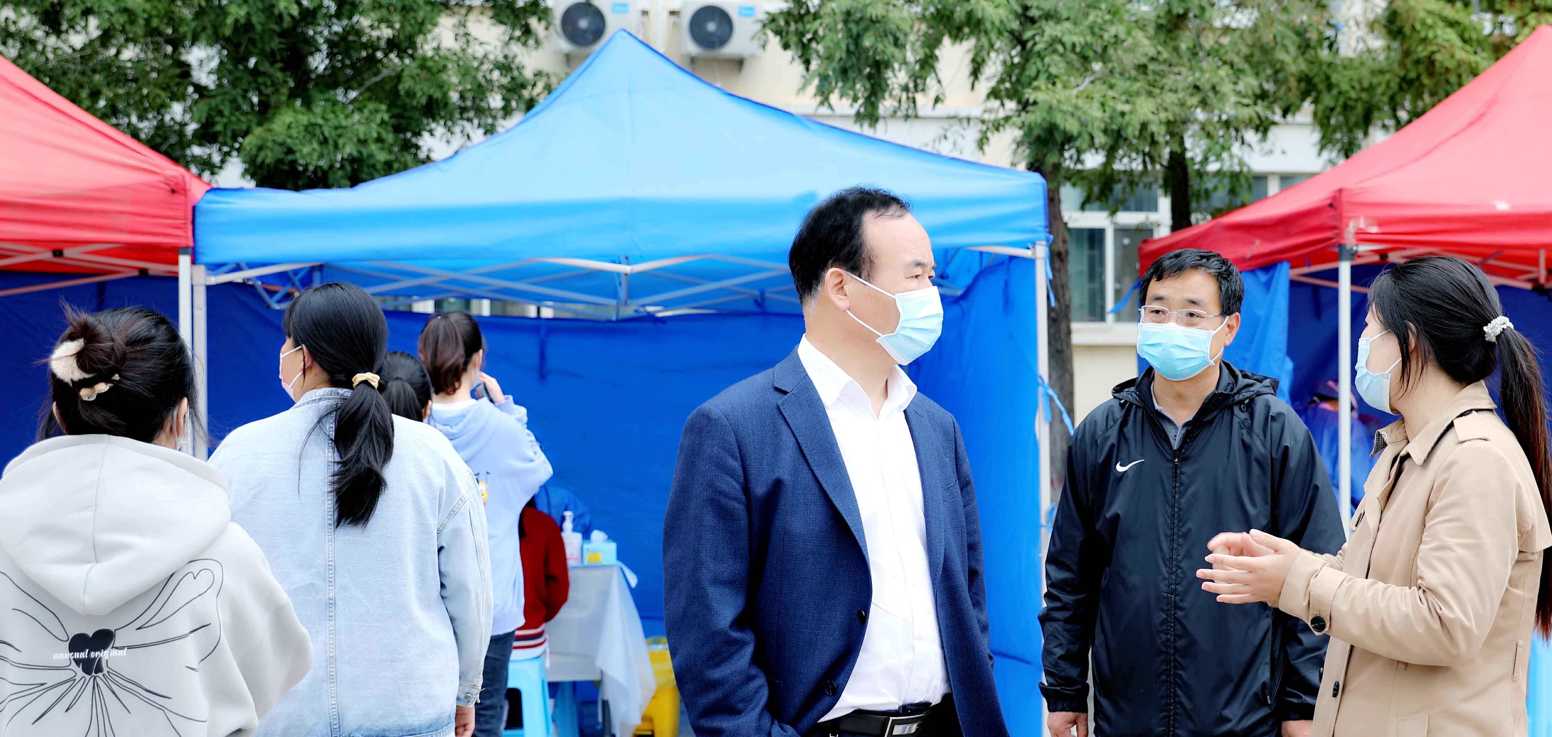 校党委书记付强、副院长王继东先后前往校门入口、核酸检测现场、宿舍、餐厅,重点检查校园环境、安全保障、后勤服务及校门、宿舍、餐厅等重点区域疫情防控措施落实情况,仔细询问了解各学院学生返校情况,看望慰问工作人员和返校学生。