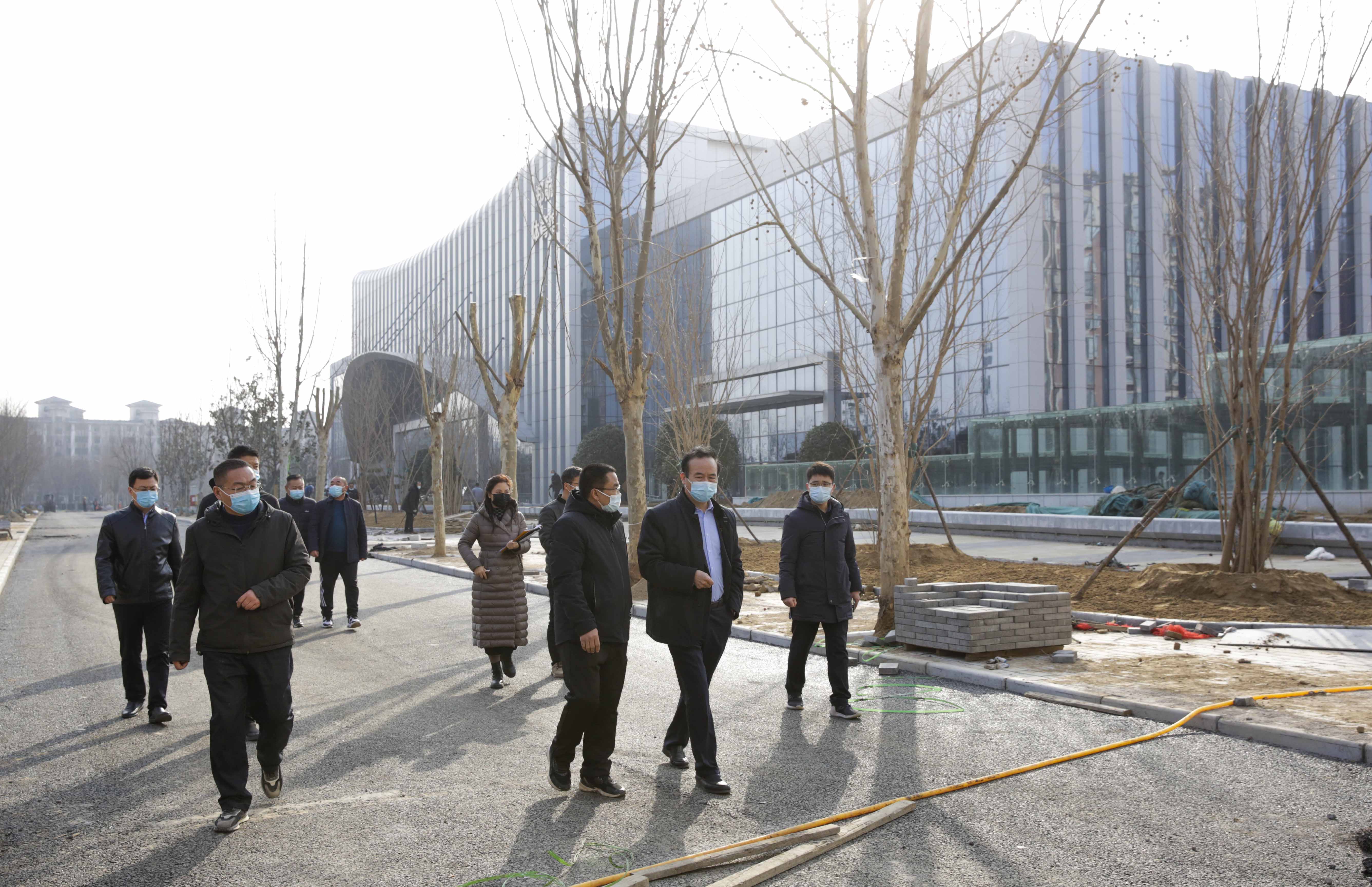 在项目建设现场,基建处、后勤管理处、工程承建单位主要负责人分别汇报了项目建设推进情况。付强详细了解工程建设情况与具体进度,并就外围路面硬化与维护、绿化景观设置、通讯设备安装、施工管理、疫情防控等工作逐一检查督导、逐项指导落实。