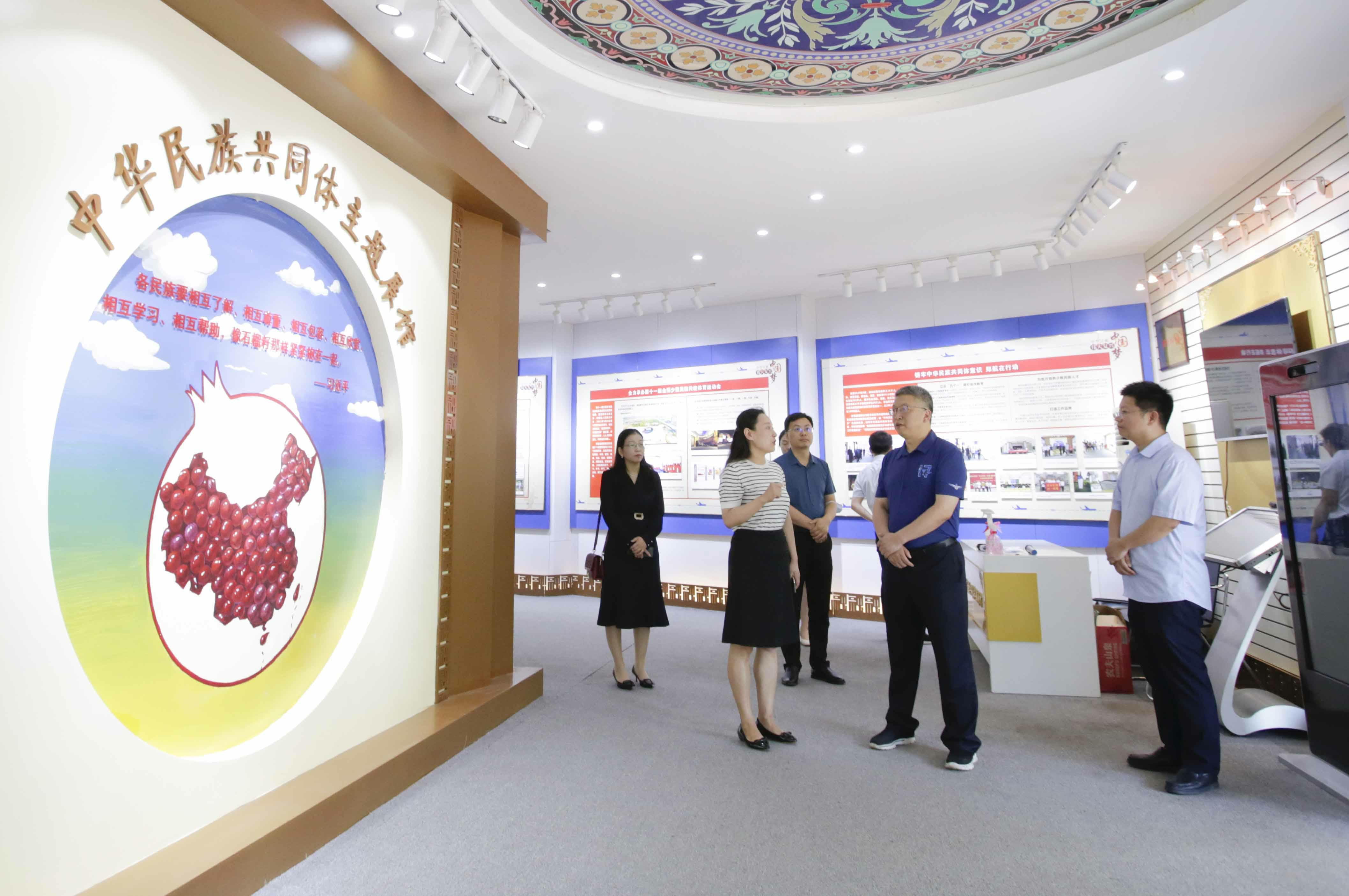 在中华民族共同体主题展馆,刘代军参观了“各民族共同创造中华文明”“共同追求中华民族解放”等四个展区,详细了解党和国家民族政策、加强各民族对中华文化认同等情况,并就展馆即将进行的改造指出,要不断丰富内容、提升功能,努力打造民族团结进步的有效活动载体。