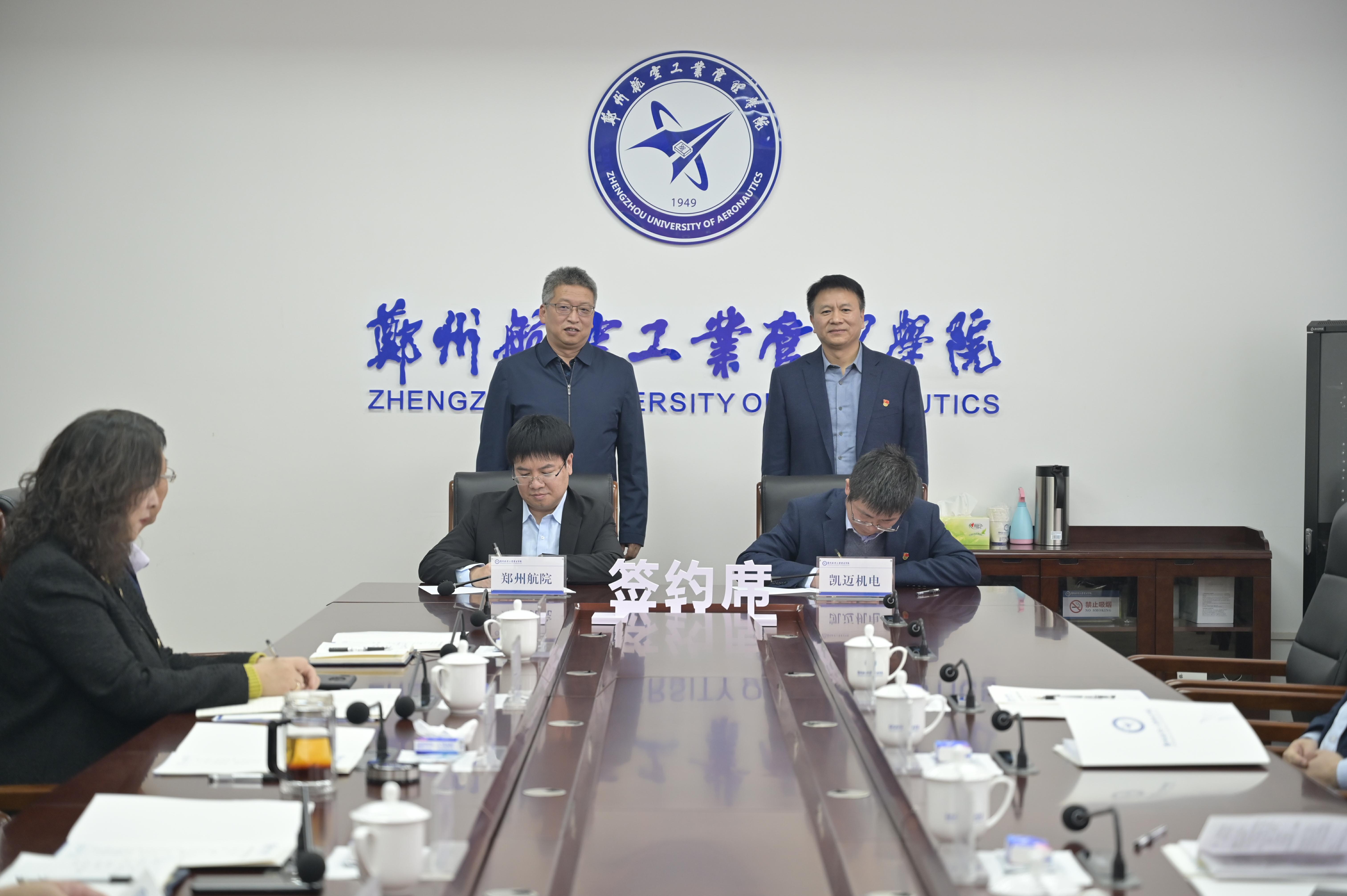 10月13日,郑州航院与凯迈(洛阳)机电有限公司战略合作框架协议签约仪式在我校举行。校长刘代军,凯迈机电有限公司总经理刘永红、党委书记酒迎军,凯迈机电汽车零部件公司总经理周卫华、副总经理张学申出席签约仪式。