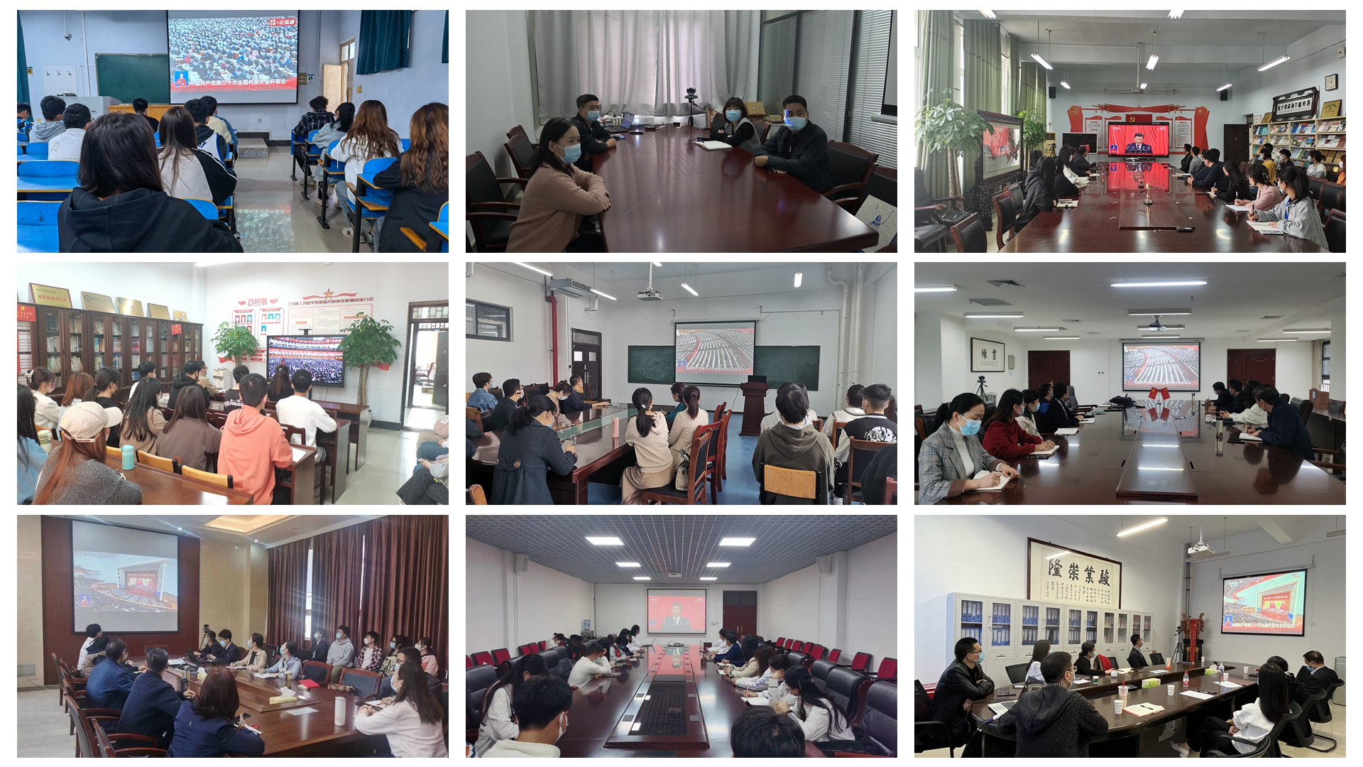 与此同时,学校各二级党组织设立分会场,组织全校师生员工、民主党派、无党派人士等通过电脑、移动客户端、电视等方式收听收看大会盛况。