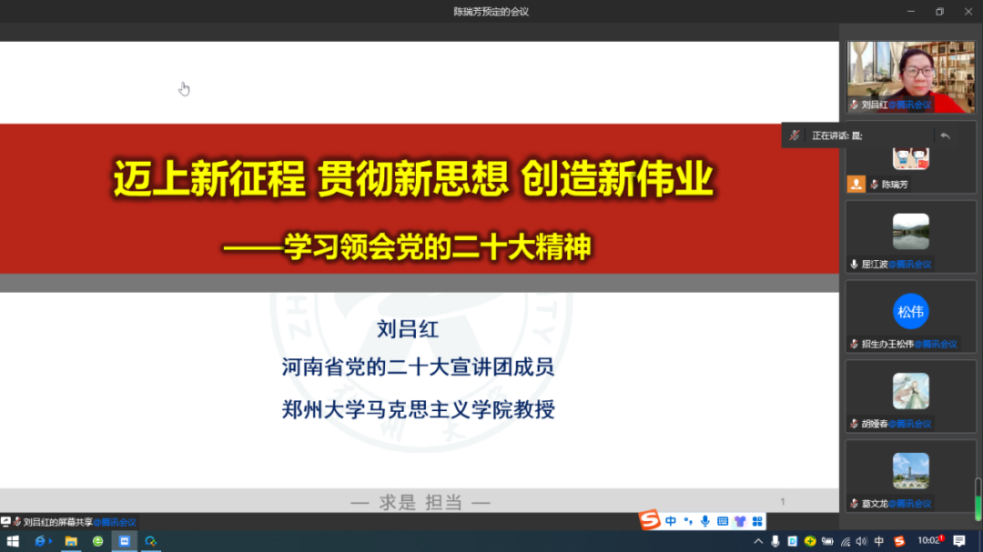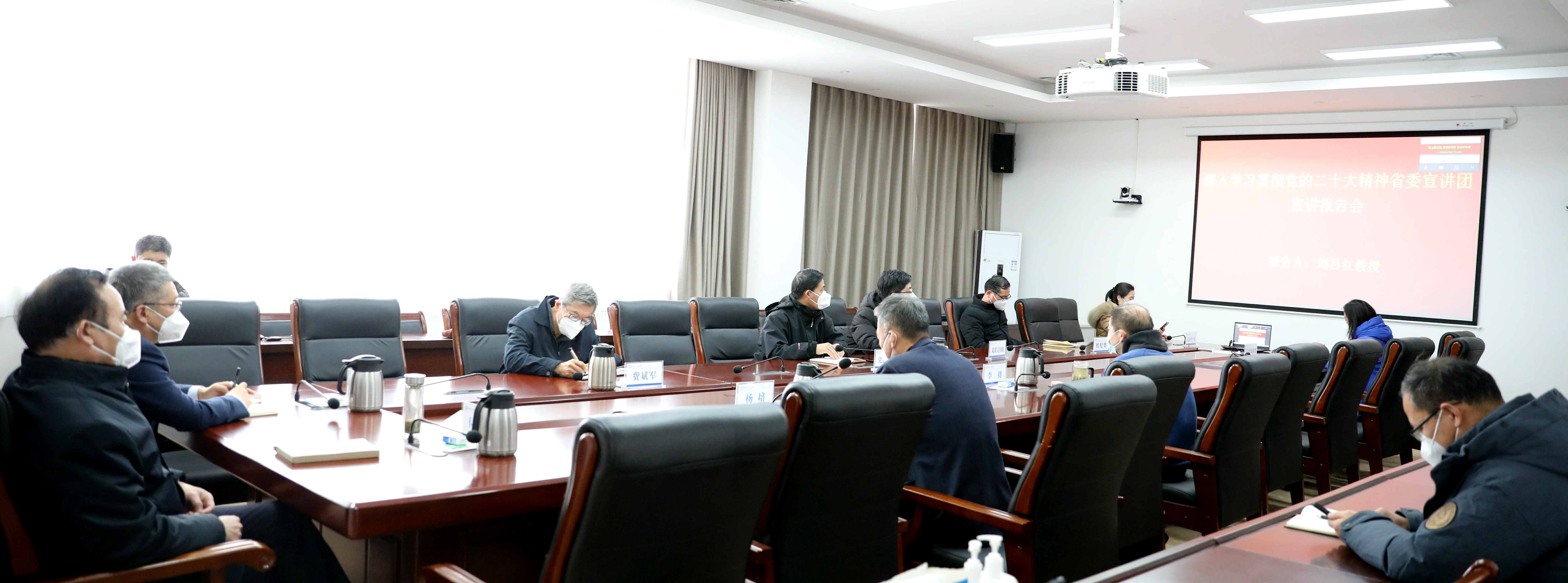 12月27日,我校以“现场+视频”的形式召开党委理论学习中心组(扩大)学习会议暨学习贯彻党的二十大精神省委宣讲团专题报告会。河南省党的二十大宣讲团成员,郑州大学马克思主义学院院长、教授、博士生导师刘吕红作专题宣讲。