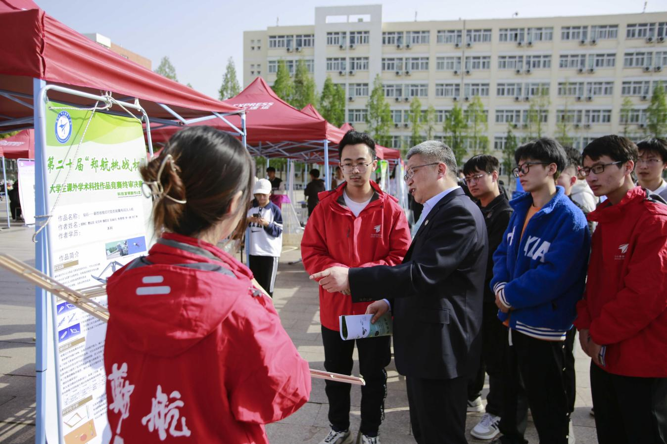 刘代军、杨培和主办承办单位负责人共同为决赛揭幕,随后来到展示区观看并指导参赛作品。据了解,这是“郑航挑战杯”首次举办的大规模室外展示,吸引了众多师生观摩交流。