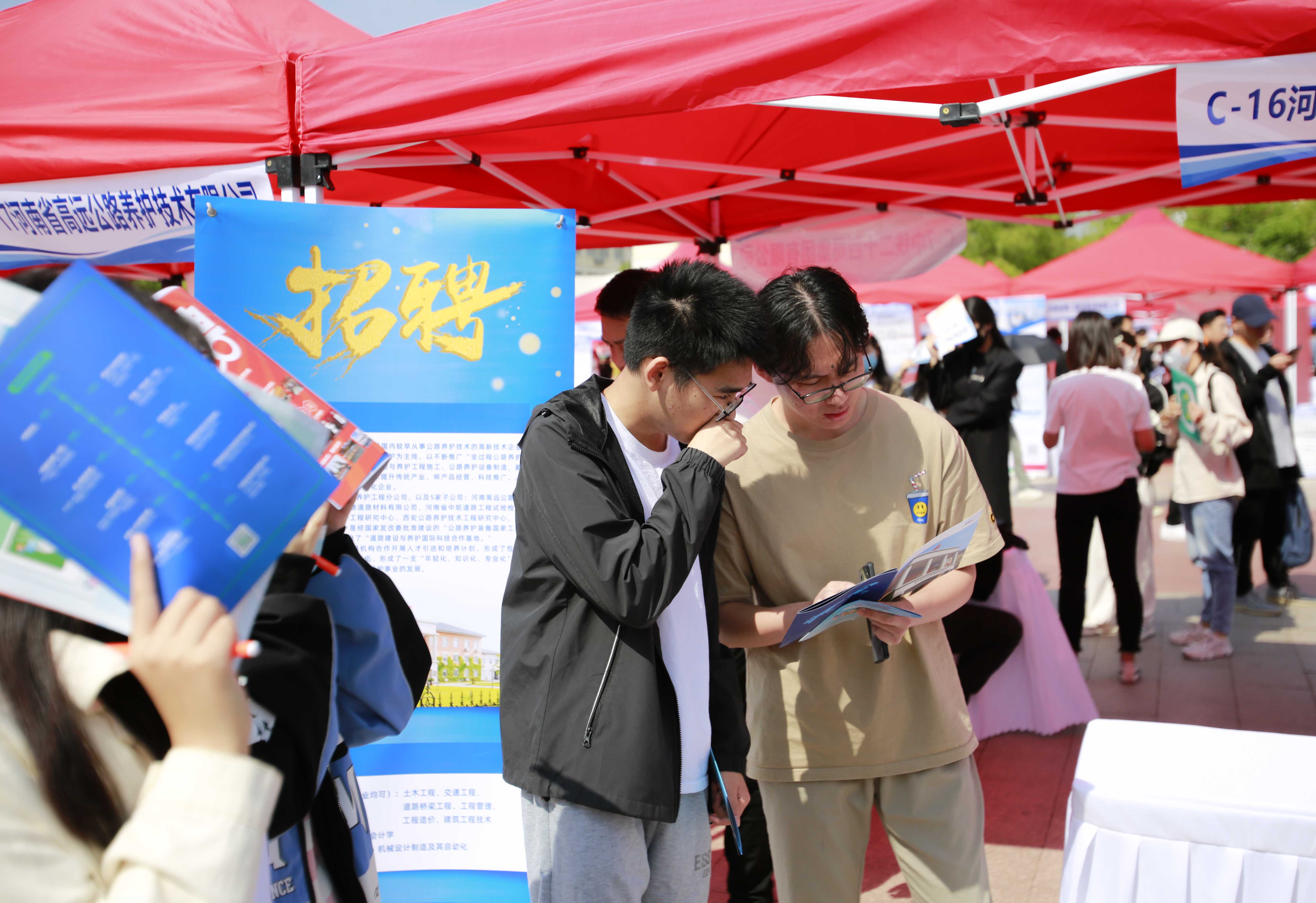 此次双选会采取“线下和线上结合、就业与实习结合”的方式开展。会场设置参会企业二维码墙,方便学生“码”上就业,学生扫描二维码可查看企业信息、岗位信息,在线投递简历。此外,招聘会现场还设置参军入伍政策咨询及郑州人才政策咨询专区。