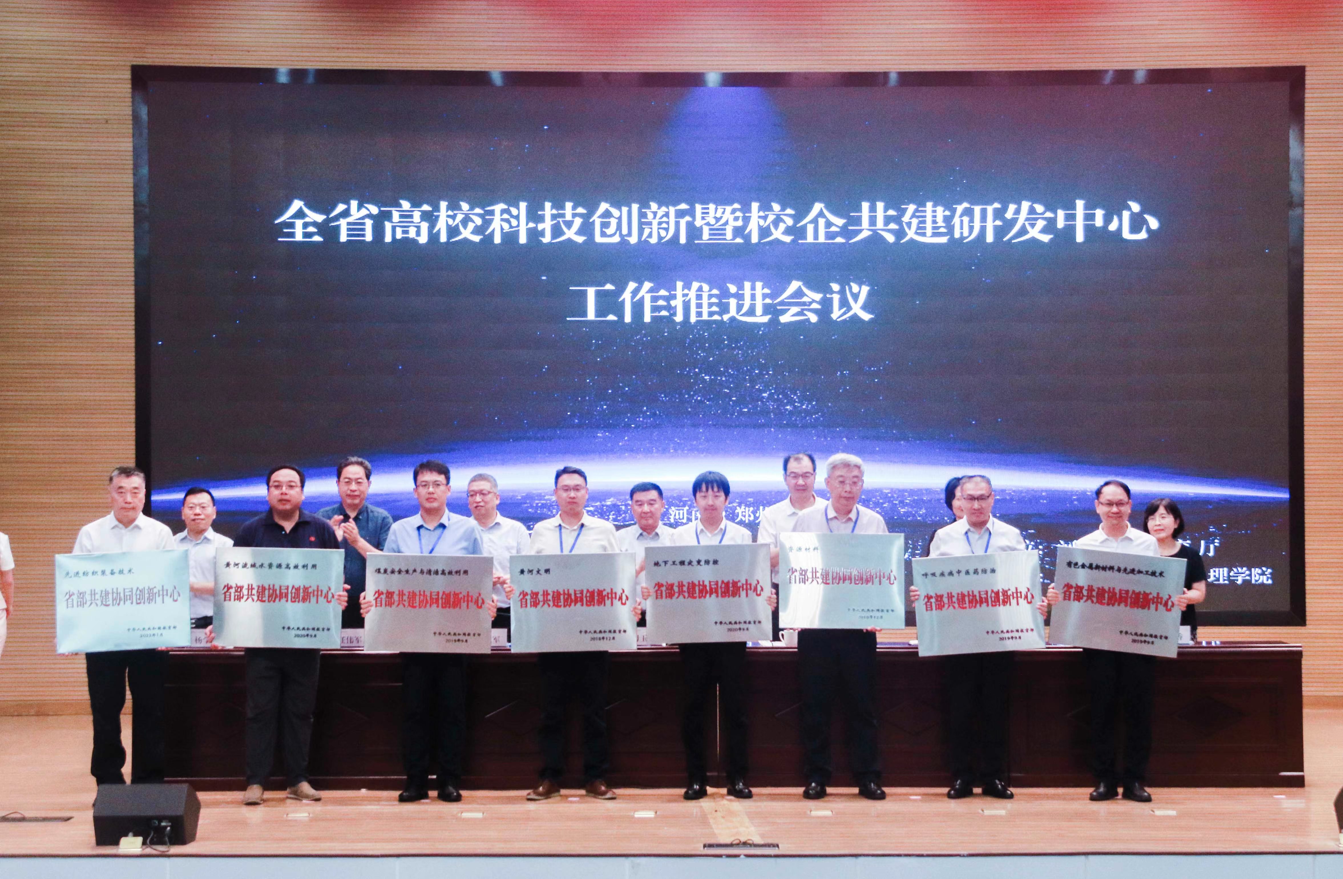 会议向省部共建协同创新中心、2023年度河南省协同创新中心和首批河南省高校科技成果转移转化基地授牌。