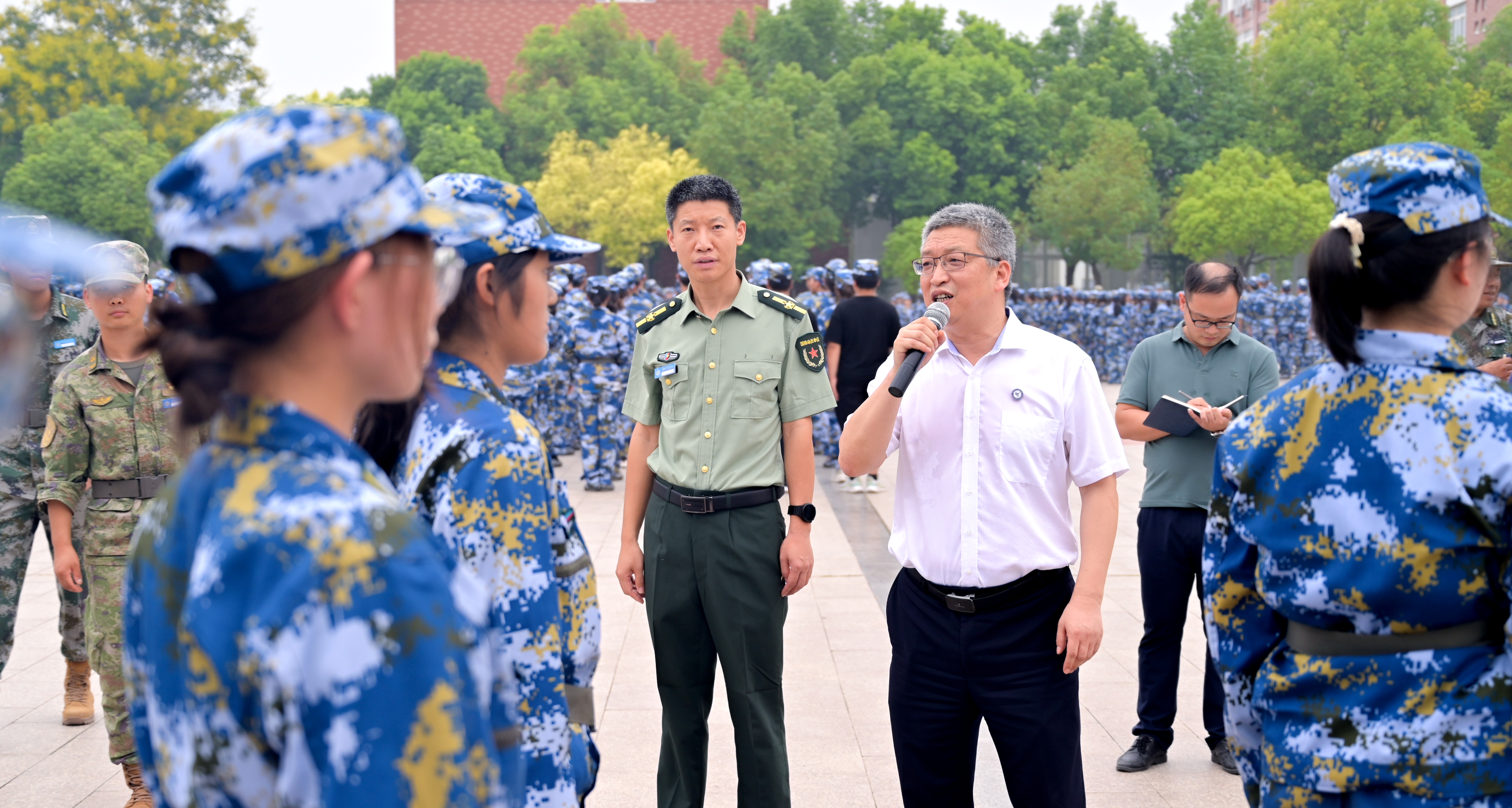 刘代军详细询问军训训练内容、遇到的困难、训练进度与日程安排等相关工作情况,并代表学校对承训教官的辛勤付出表示衷心感谢,对参训学生展现的良好精神面貌和不怕苦不怕累的军训态度给予肯定和鼓励。他强调,军事训练是新生来到大学的“第一堂课”,也是落实全民国防教育的重要体现,对于增强学生国防意识、强化组织纪律观念、培养良好的生活习惯、提高学生身体素质发挥着至关重要的作用。