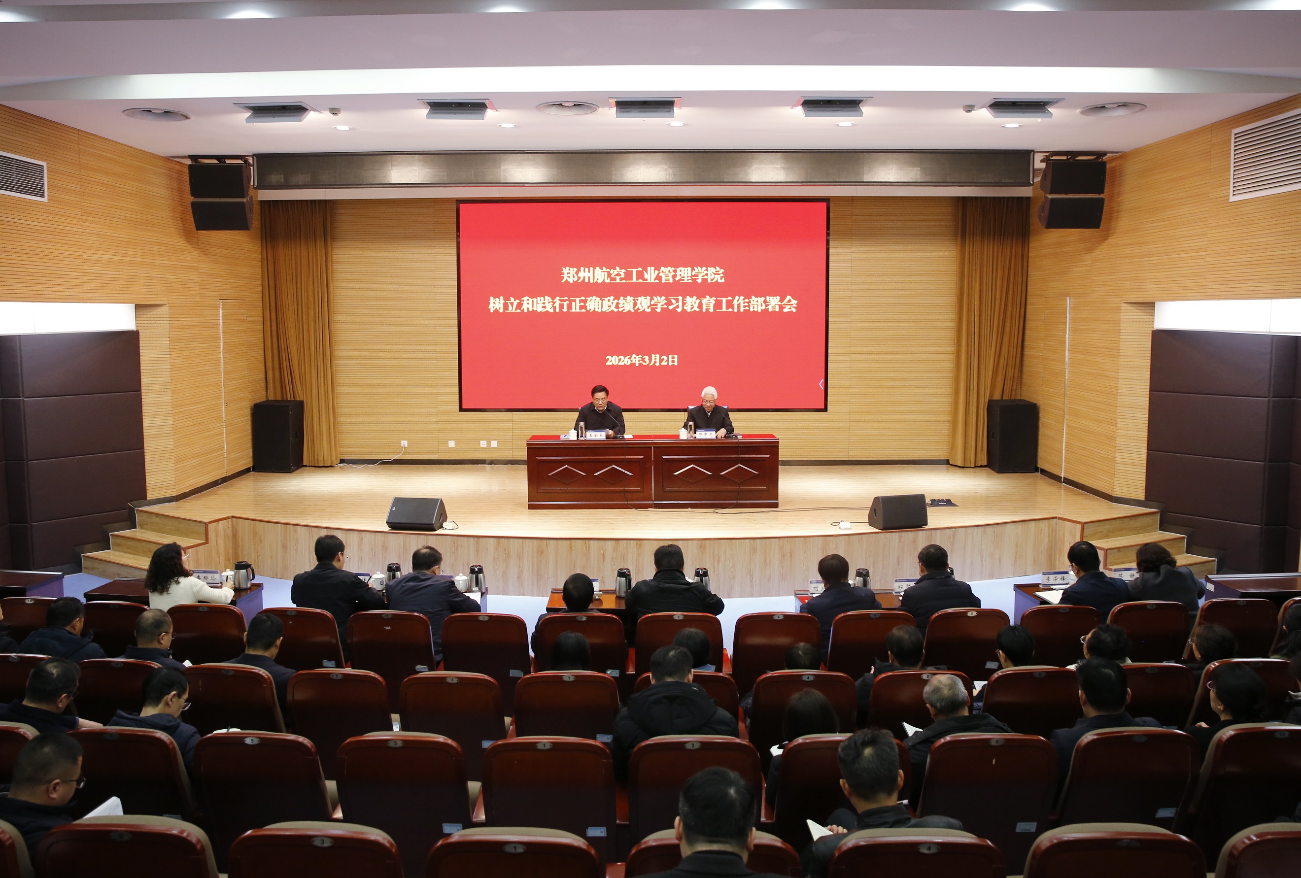 王全良就我校开展好树立和践行正确政绩观学习教育提出具体要求。第一,提高政治站位,深刻认识开展学习教育的重大意义。开展此次学习教育,是贯彻落实党的二十届四中全会战略部署、确保基本实现社会主义现代化取得决定性进展的必然要求,是践行党的根本宗旨、夯实党的执政根基的重要举措,是巩固拓展党内集中学习教育成果、持之以恒推进全面从严治党的有效途径。要深刻认识到,在精心谋划“十五五”发展的开局之际,在建设高水平航空航天大学的关键时期,开展学习教育具有特殊而深远的现实意义。学习教育是坚守为党育人、为国育才初心使命,牢牢把握社会主义办学方向的根本要求;是夯实发展根基、推动学校内涵式高质量发展的现实需要;是践行以师生为中心的发展思想,努力办好人民满意、师生认可的高水平大学的有力抓手。第二,坚持学用结合,以正确政绩观引领学校事业高质量发展。要明方向、守初心,回答好“政绩为谁而树”的根本问题,始终把师生满意度作为衡量工作的最高标准;要笃信行、重实效,回答好“树什么样的政绩”的时代课题,在人才培养、学科建设、科技创新上追求实效、下足真功;要重实干、固根本,回答好“靠什么树政绩”的实践路径,以坚强党性、务实行动、优良作风创造出更多经得起实践、师生和历史检验的实绩。第三,明确目标要求,高质量推动学习教育各项任务落地见效。全校各级党组织要紧扣“立党为公、为民造福、科学决策、真抓实干”的总要求,落实好五个方面重点举措。要深化“学习研讨”,在理论武装中筑牢思想根基;要聚焦“查摆问题”,在对标检视中找准差距不足;要突出“整改整治”,在动真碰硬中解决顽瘴痼疾;要抓好“建章立制”,在制度建设上巩固教育成果;要坚持“开门教育”,在师生参与中检验工作成效。