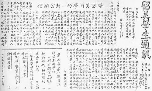 △1950年3月18日《留美学生通讯》刊登《给留美同学的一封公开信》